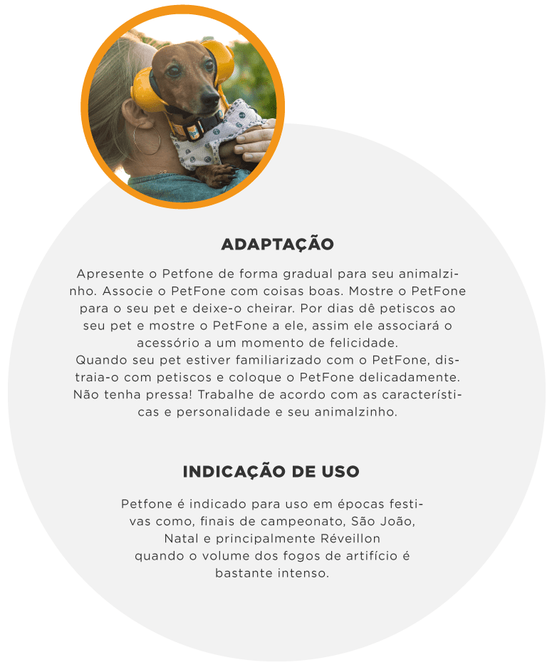Petfone é indicado para uso em épocas festivas como, finais de campeonato, São João, Natal e principalmente Réveillon quando o volume dos fogos de artifício é bastante intenso.